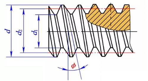 8、螺紋升角(導程角),中徑圓柱上螺旋線的切線與垂直于螺紋軸線的平面之間的夾角。