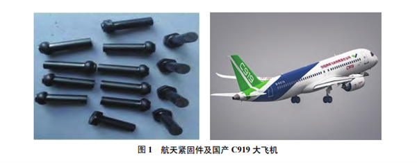 一架中型飛機(jī) (如國產(chǎn)C919) 所用的緊固件的總重量可占飛機(jī)總質(zhì)量的5%~6%,可達(dá)200萬到300 萬個(gè)[3]。圖1為 TC16 鈦合金緊固件及 C919 飛機(jī)。