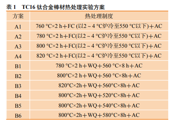 且不同退火及固溶時(shí)效工藝對其組織及性能影響較大[4],因此,本文通過研究不同退火工藝及固溶時(shí)效工藝對TC16合金棒材組織、性能的影響規(guī)律,為緊固件用 TC16 合金國產(chǎn)化、批量化的研制及生產(chǎn)提供技術(shù)支持。