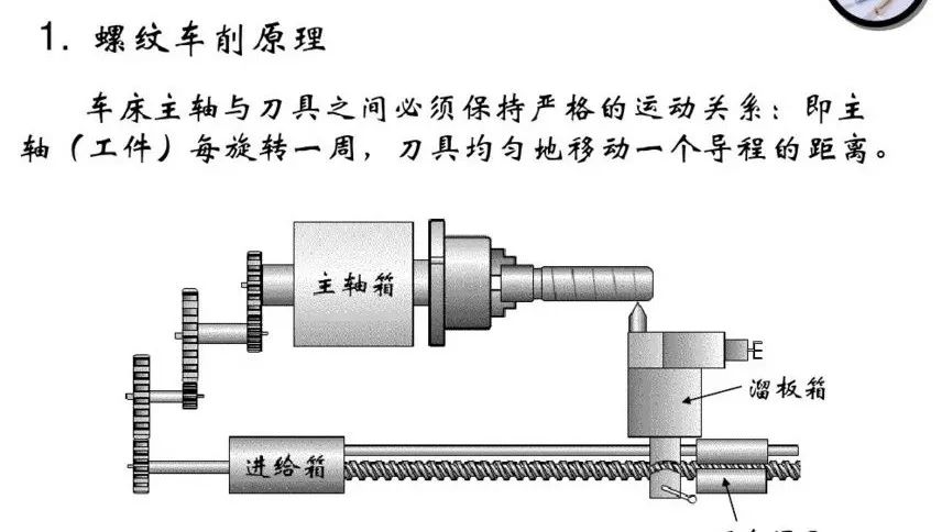 車床主軸與刀具之間必須保持嚴格的運動關系:即主軸(工件)每旋轉(zhuǎn)一周,刀具均勻地移動一個導程的距離。