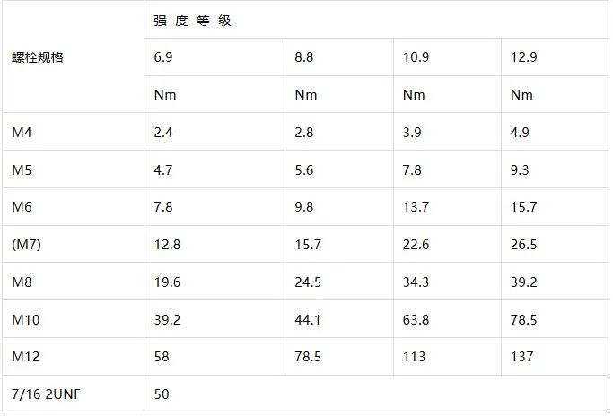 經(jīng)驗(yàn)豐富的檢測(cè)工程師可以依照螺栓的規(guī)格等級(jí)快速判斷出螺栓的合格擰緊力究竟是多少,下面我們以汽車行業(yè)的座椅螺栓常用擰緊力舉例,看看常用尺寸規(guī)格的螺栓擰緊力應(yīng)該達(dá)到多少才算適宜。