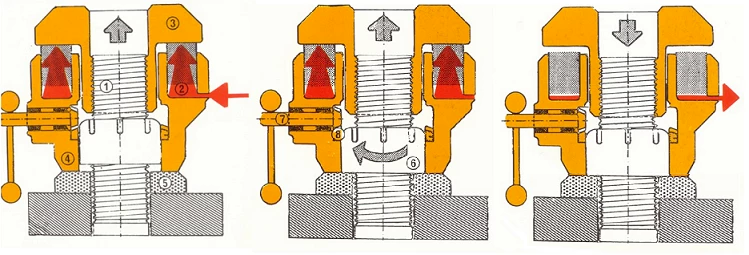 液壓張緊,無論是螺栓張緊器還是液壓螺母形式,都使用液壓來拉伸螺紋緊固件。由于液壓可以輕松準確地測量,而且液壓缸的壓力面積保持不變,因此液壓張緊比扭矩控制方法具有更好的精度(螺栓張力變化<±10%)。在這兩種液壓張拉方法中,需要注意的是,不存在高扭矩旋轉(zhuǎn)力及其相關(guān)摩擦。這種在高負載下接觸的滑動面的缺乏將螺紋磨損的風險降至最低,這是液壓張緊的另一個優(yōu)點。