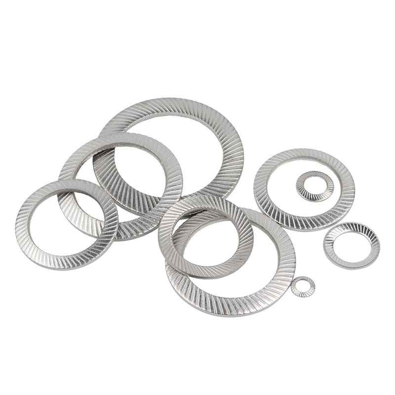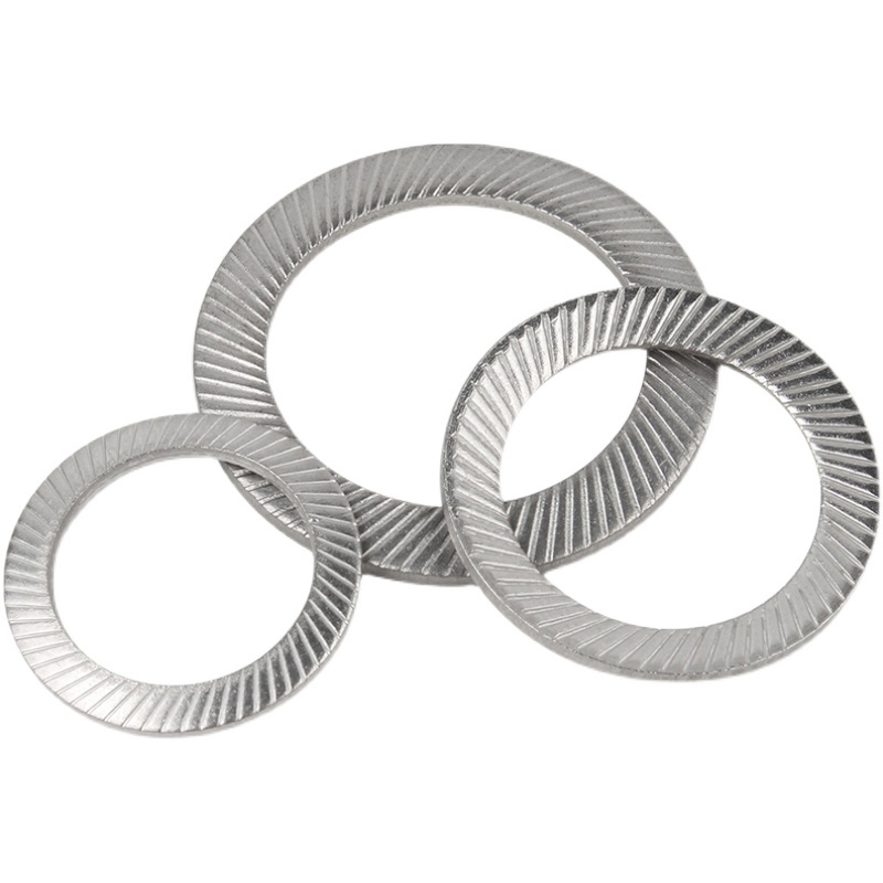 不銹鋼重型防松墊圈其獨(dú)特結(jié)構(gòu)改變了傳統(tǒng)墊圈主要通過摩擦力來達(dá)到防松的方式,而是采用國際最為先進(jìn)的防松技術(shù),利用兩墊片之間的張力來達(dá)到防松和制緊的雙重效果。