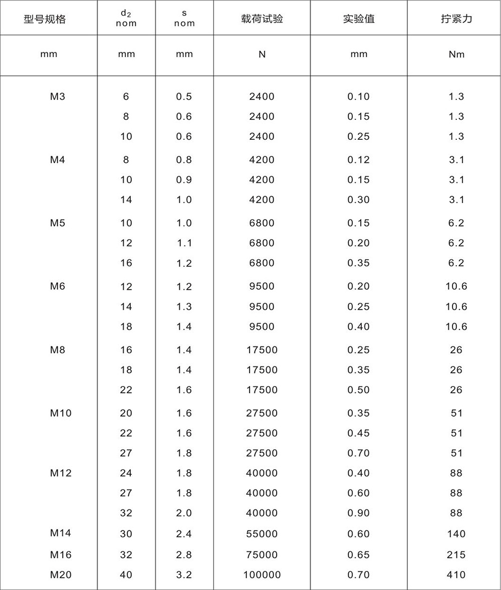 NFE25511法國標(biāo)準(zhǔn) - 代號CS墊圈產(chǎn)品性能試驗參數(shù)表