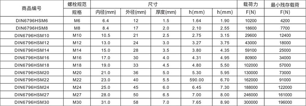 ![]() | 高張力碟形墊圈彈性張力更強,應(yīng)用于強動力負載高鐵動車防松緊固聯(lián)接裝備。碟形彈簧墊圈屬于安全緊固件類別,因此專業(yè)制造能力會要求較高,需要做靜態(tài)負負載承壓及動態(tài)壓力載荷測試!高張力形墊圈用途廣泛,一種與螺栓配合使用的高張力防松功能墊圈,適用于高強度硬連接設(shè)計,碟形墊圈制造與應(yīng)用受許多條件影響,需要科學(xué)了解與測評,否則很難達到理想安全功能! 制造執(zhí)行標(biāo)準(zhǔn):符合DIN6796-HS標(biāo)準(zhǔn)。規(guī)格:M6-M30型號,也可提供訂制服務(wù)主要材質(zhì)有S60C,60Si2mn,51crav4及SUS304\SUS316特殊合金等,經(jīng)等溫精細硬后進行磷化黑,機械鋅,鋅鋁涂層表面處理等!安全墊圈不適宜化學(xué)表面處理!多數(shù)標(biāo)準(zhǔn)型碟形彈簧墊圈有時并不能完全滿足設(shè)計要求,通過計算與調(diào)整訂制來獲得理想安全功能! 優(yōu)點及特點:高軸向載荷、高疲勞壽命、高載荷落差(因溫差引起)補償、有效降低動載荷的負面影響、防松鎖緊、彈性高,載荷集中均勻,安全度高。 產(chǎn)品應(yīng)用領(lǐng)域:本產(chǎn)品現(xiàn)廣泛應(yīng)用于電器,電梯,電塔,機械設(shè)備,醫(yī)用機械產(chǎn)品配套上,是一款碟型改良緊固件產(chǎn)品,質(zhì)量符合德標(biāo)DIN6796碟形彈簧標(biāo)準(zhǔn)。 |