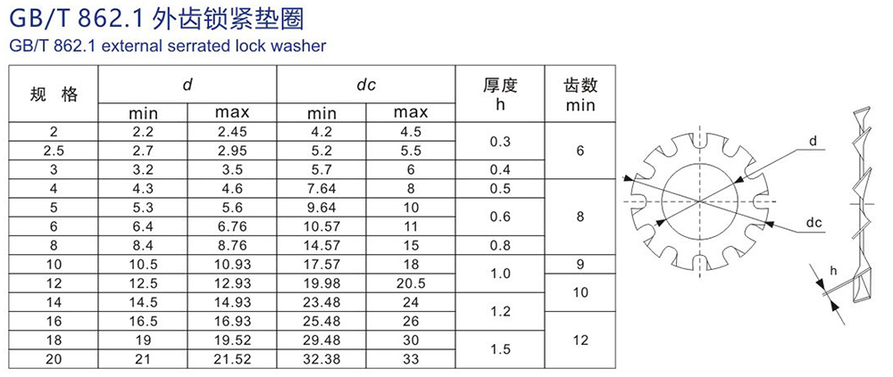 外齒鎖緊墊圈 GB/T 862.1 產(chǎn)品參數(shù)