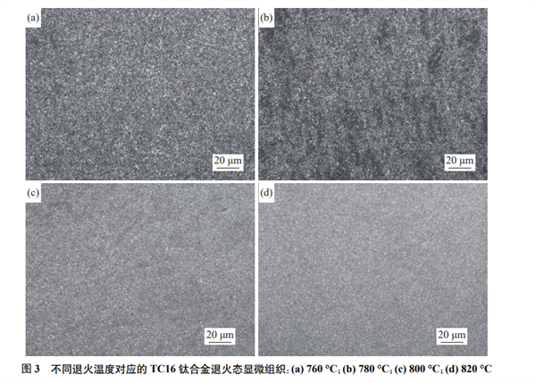 圖4為不同退火溫度對TC16鈦合金棒材室溫性能的影響。