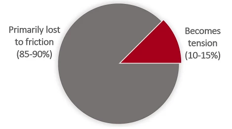 為了正確回答這個問題,首先考慮只有大約10-15%的輸入扭矩實際拉伸了螺栓;其余85-90%的輸入扭矩主要用于克服配合螺紋之間的摩擦和螺栓頭或螺母下的摩擦。摩擦取決于許多變量,包括但不限于潤滑劑類型和條件、表面粗糙度、鍍層和材料,因此,即使在同一組件中的螺栓之間,摩擦也可能會發(fā)生顯著變化。此外,由于摩擦力主導了扭矩-張力關(guān)系,即使摩擦力發(fā)生微小變化,也會導致螺栓張力發(fā)生顯著變化。