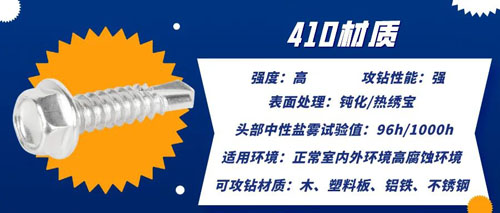 304/316材質較軟。無法攻鉆鐵板,只能攻鉆比較軟的鋁和鋁合金材質板材。若想直接攻鉆鐵板,則要選擇410材質或復合材質的鉆尾螺絲。