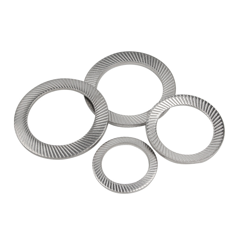 不銹鋼重型防松墊圈其獨(dú)特結(jié)構(gòu)改變了傳統(tǒng)墊圈主要通過摩擦力來達(dá)到防松的方式,而是采用國際最為先進(jìn)的防松技術(shù),利用兩墊片之間的張力來達(dá)到防松和制緊的雙重效果。
