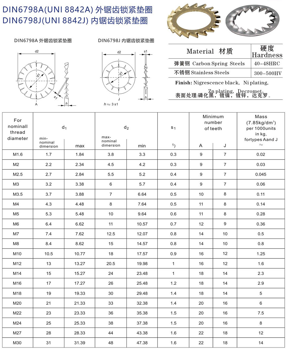 名稱:不銹鋼內(nèi)外鋸齒鎖緊墊圈 DIN6798A DIN6798J