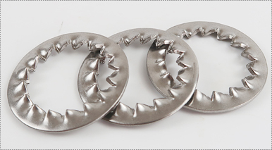 鋸齒鎖緊墊圈是單獨(dú)的一個(gè)環(huán)形墊圈,開(kāi)口是錯(cuò)位的,當(dāng)上緊螺母的時(shí)候,錯(cuò)開(kāi)口的尖牙,上面的鋸齒會(huì)鑲嵌到構(gòu)件表面,起到防止螺母松動(dòng)的作用。
